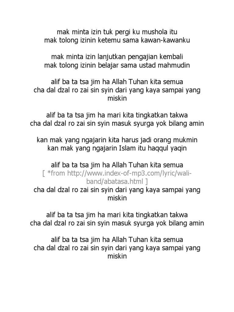 Lirik Lagu Abatasa Oleh Wali Cari Lirik Lagu Di Wowkeren Com from i.ytimg.com Lirik wali mak minta izin. Maybe you would like to learn more about one of these? Check spelling or type a new query. We did not find results for: